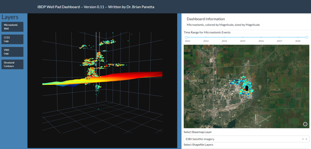 Below are a few of my latest 3D Visualization projects that you can explore. The Boggess project is a dashboard of 6 horizontal Marcellus wells from West Virginia. The Illinois project is a from a carbon sequestration project with two vertical wells, a CO2 well and a monitoring well. The microseismic data tracks the plume movement over a period of six years.